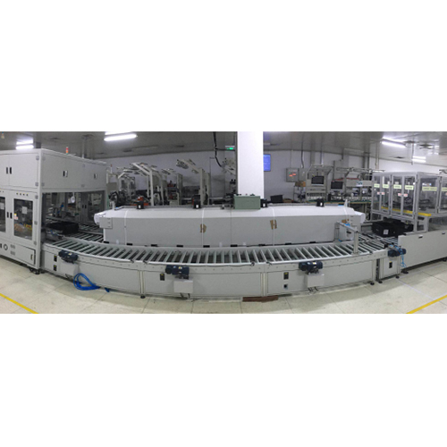 全自动机器人自动锁螺丝,灌胶,固化,测试线体无需人工操作。